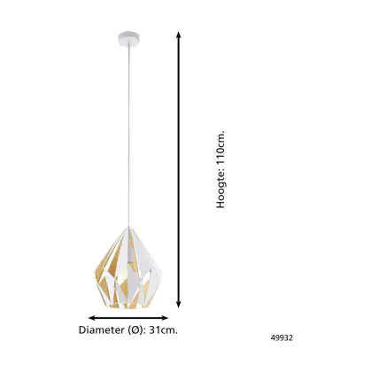 Beschrijving Eglo Hanglamp Carlton 1 Staal Wit Goud | IP20 - Geschikt voor 1x E27