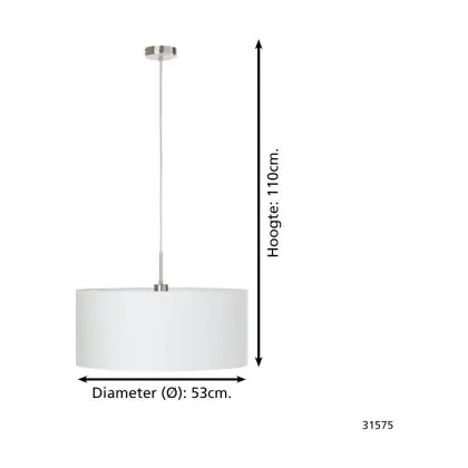 Beschrijving Eglo Hanglamp Pasteri Staal Satijn Nikkel | IP20 - Geschikt voor 1x E27