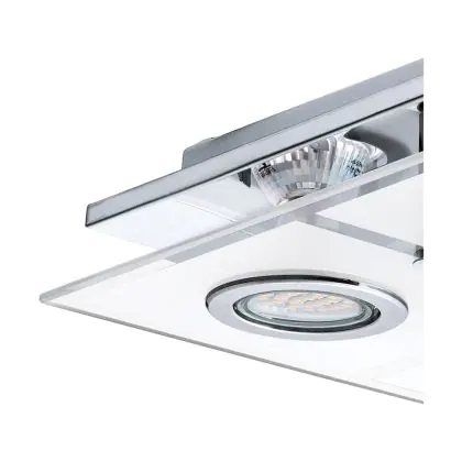 Beschrijving Eglo Plafondlamp Cabo Roestvrij Staal Chroom 4x2.8W 4x250lm - 830 Warm Wit | IP20 - Incl. 4x GU10
