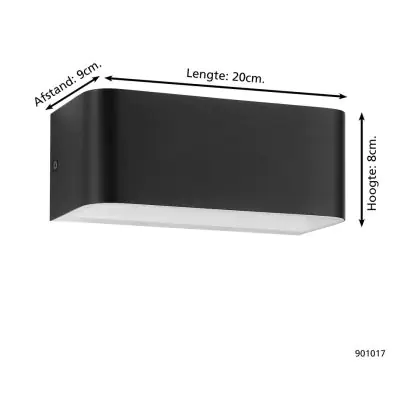 Beschrijving Eglo Wandlamp Sania 4 Aluminium Zwart Wit 10W 1300lm - 830 Warm Wit | IP20