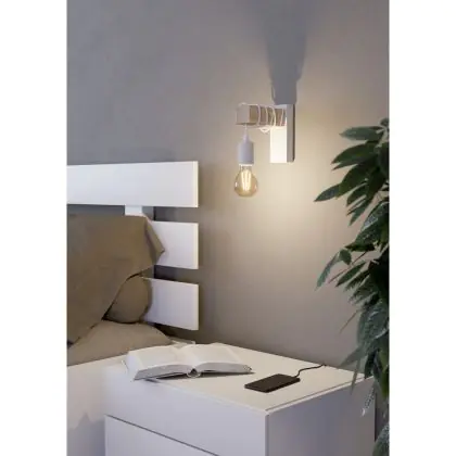Beschrijving Eglo Wandlamp Townshend Staal Wit | IP20 - Geschikt voor 1x E27