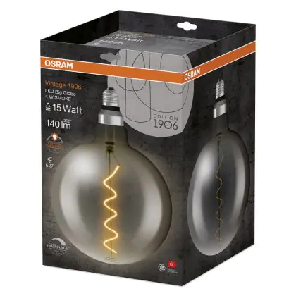 Deze bolvormige en stijlvolle LED gloeilamp uit de welbekende Osram Vintage 1906 serie voorziet elke ruimte van sfeer en gezelligheid. Het zwart gekleurde glas en de sierlijke kooldraad met daarin hoogwaardige kwaliteit LED’s zorgen voor een schitterend contrast qua licht en is het aanzien meer dan waard! Laat iedereen versteld staan van de warme tint die deze Osram vintage LED lamp creëert.
