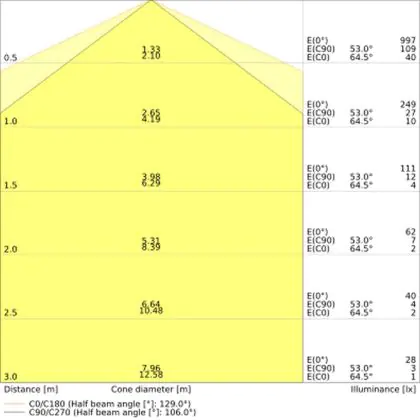 De lichtopbrengst (Lumen), geeft weer hoe krachtig het uitgestraalde licht is. Dit is belangrijk om te weten om de juiste sfeer te creëren. 0 tot 400 Lumen is bij uitstek geschikt voor accent- of sfeerverlichting. Een hoger aantal Lumen is, afhankelijk van de grootte van de ruimte, beter geschikt als ondersteunende- of basisverlichting. Heb je plafonds hoger dan 4 meter, dan is een lichtopbrengst van minimaal 8000lm aan te raden indien heldere verliching gewenst is (vb. in werkomgevingen).